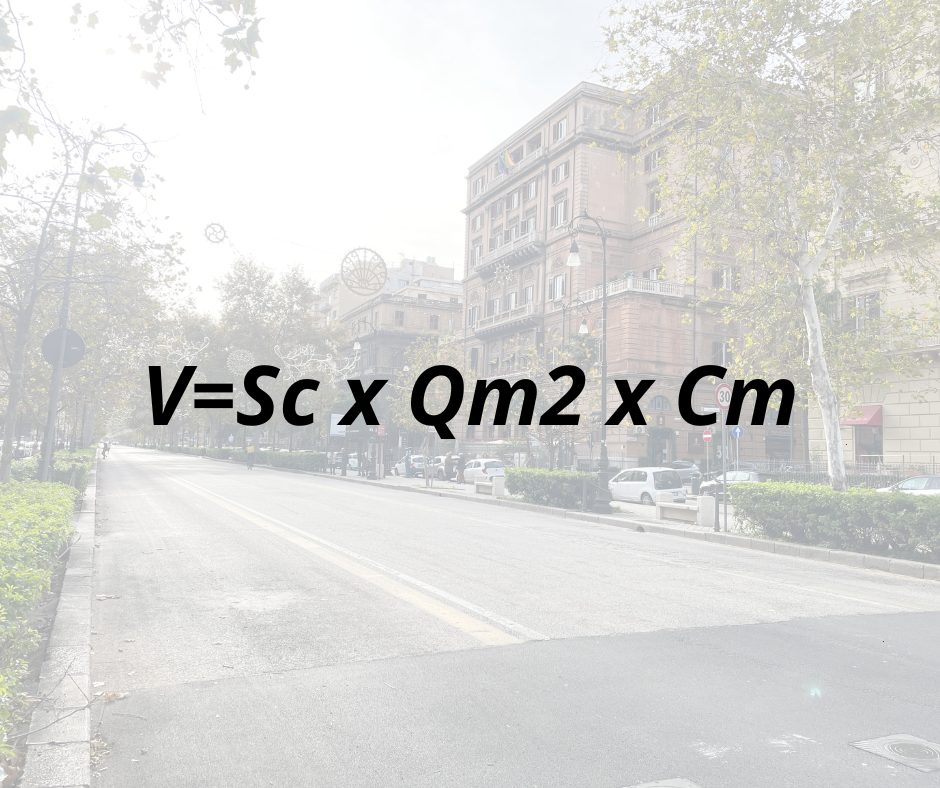 Valore dell’immobile = Superficie commerciale  × Quotazioni al m2 x Coefficienti di Merito